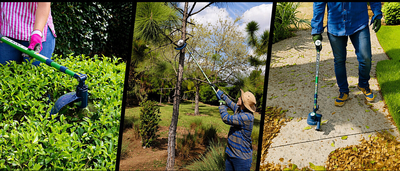 Tired of heavy, noisy yard tools that clutter your garage? Meet Max Reach® the all-in-one cordless system that replaces your hedge trimmer, pole saw, and leaf blower/Air Broom. Swap functions in seconds, work without ladders or cords, and finish faster with less effort.